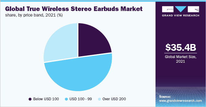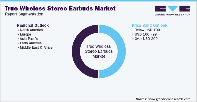 The report forecasts growth in terms of revenue and volume at global, regional, and country levels and provides an analysis of the latest trends and opportunities in each of the sub-segments from 2018 to 2030. For this study, Grand View Research has segmented the global true wireless stereo earbuds market report based on price band and region: